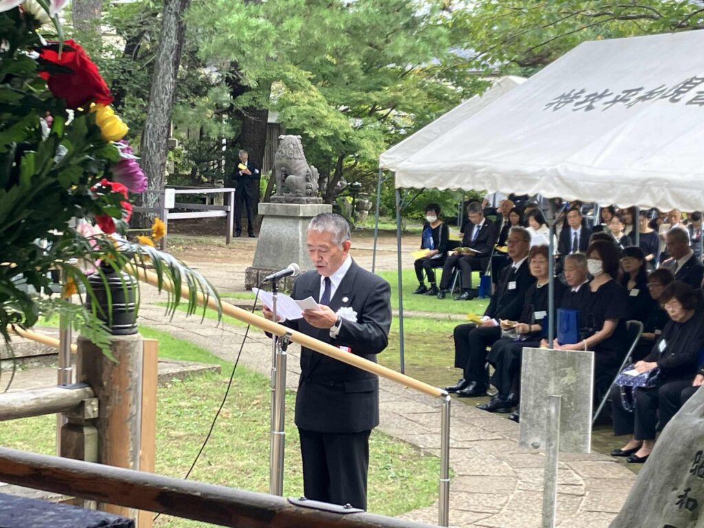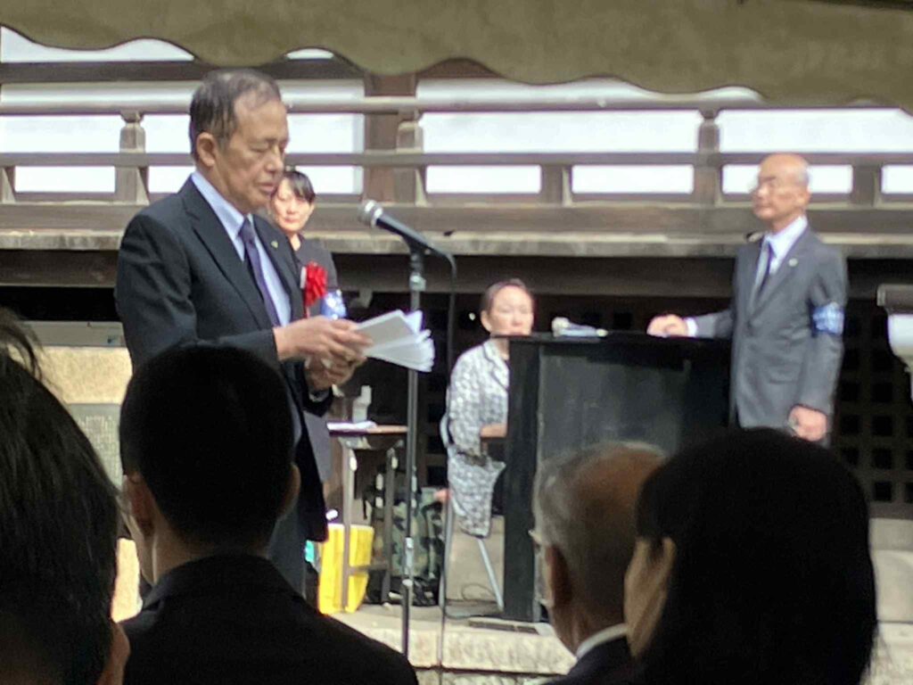 「祭文奏上」理事長 岩﨑茂(空将、第4代統合幕僚長、第31代航空幕僚長)