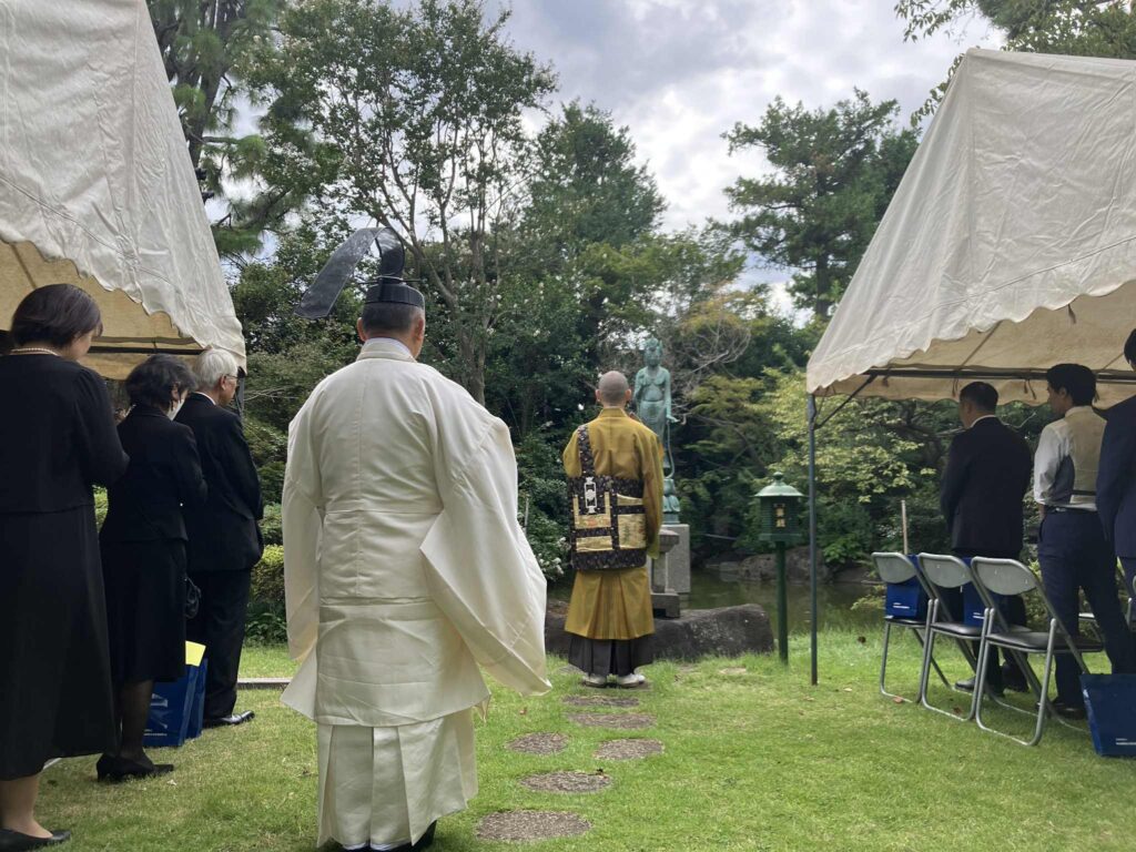 当日は、世田谷山観音寺と駒繋神社による神仏習合で法要を行い、ご遺族をはじめ約150名が参列。